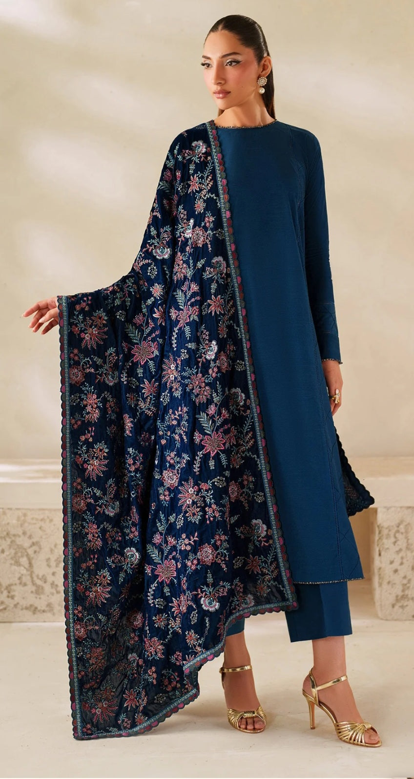 This Teal Velvet Shawl is both luxurious and eye-catching. Its striking color and intricate embroidery add a touch of elegance to any outfit, while providing warmth and comfort. Stay cozy and stylish with this must-have accessory.